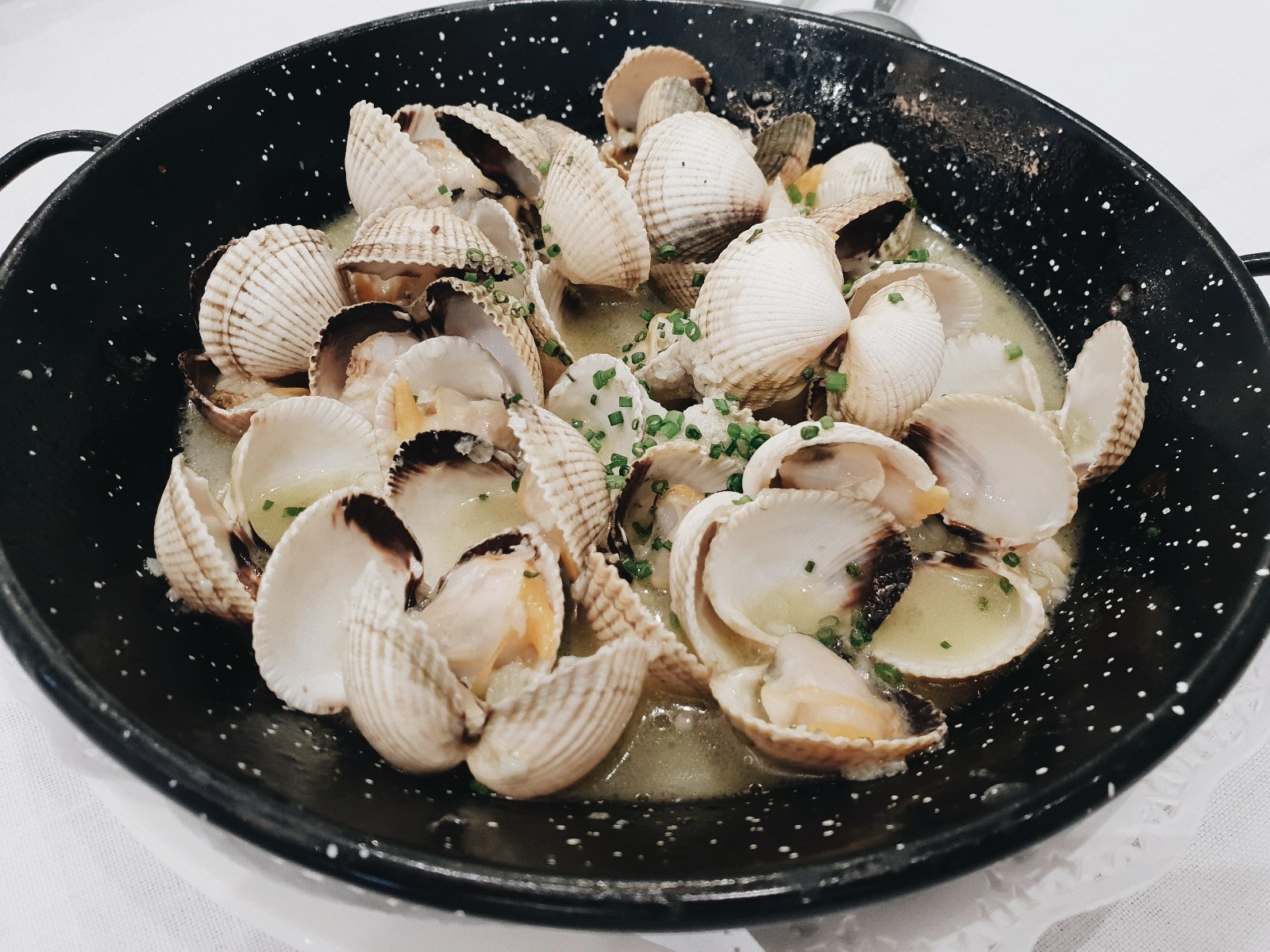 Berberechos al vapor. Cazuela de berberechos como sugerencia de la casa.