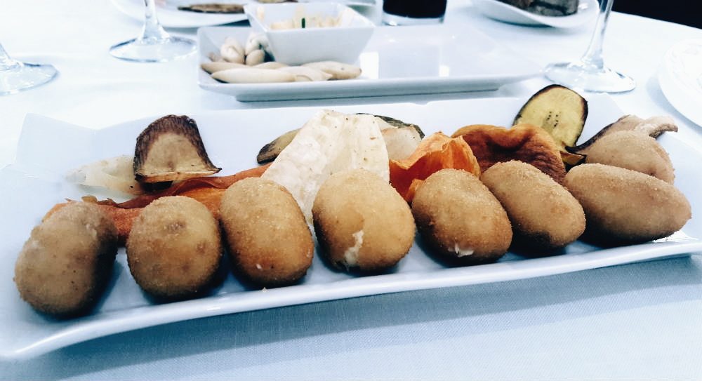 Deliciosas croquetas de jamón ibérico, muy esponjosas y jugosas, acompañado con unos crujientes de verduras.