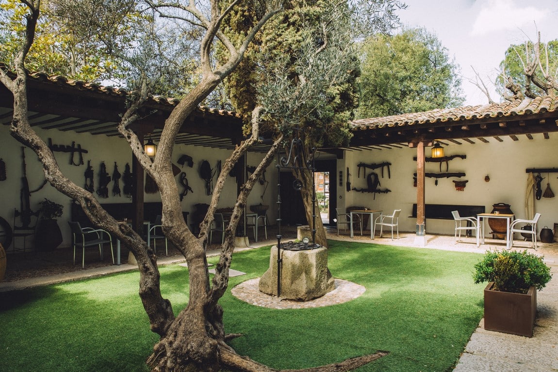 Tras pasar el dintel de su entrada, se abre paso un pequeño patio ambientado con la decoración de utensilios propios de la época y que guarda encantos de lo que un día fue.