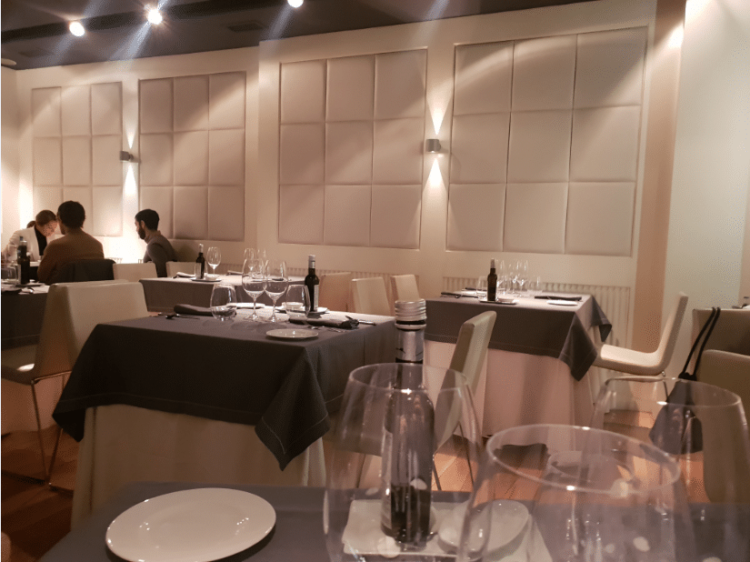 La decoración es elegante y sobria , una mezcla entre blancos y negros que dan un toque formal a la estancia y un ambiente cosmopolita. Un predominio de tonos neutros en la zona del restaurante y algo más vivo en la planta superior, en la taberna.