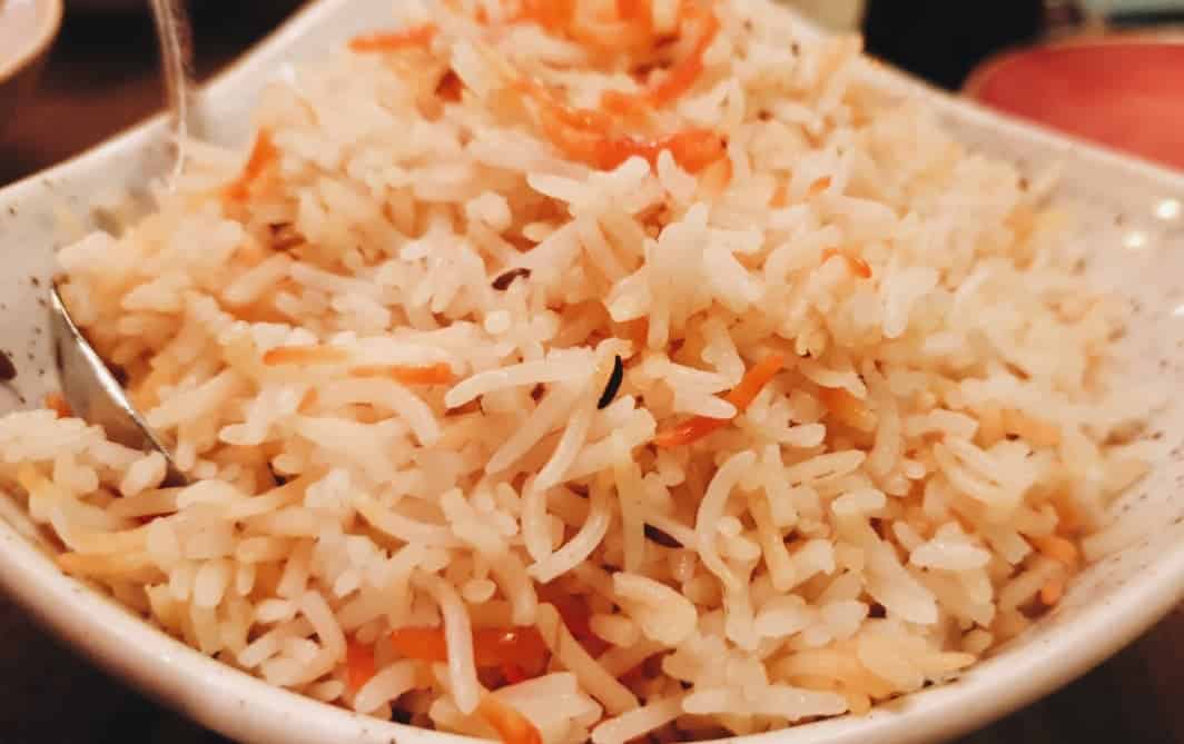 Como acompañamiento de los Currys tenemos arroz basmati con cardamomo, canela, anís estrellado y azafrán.