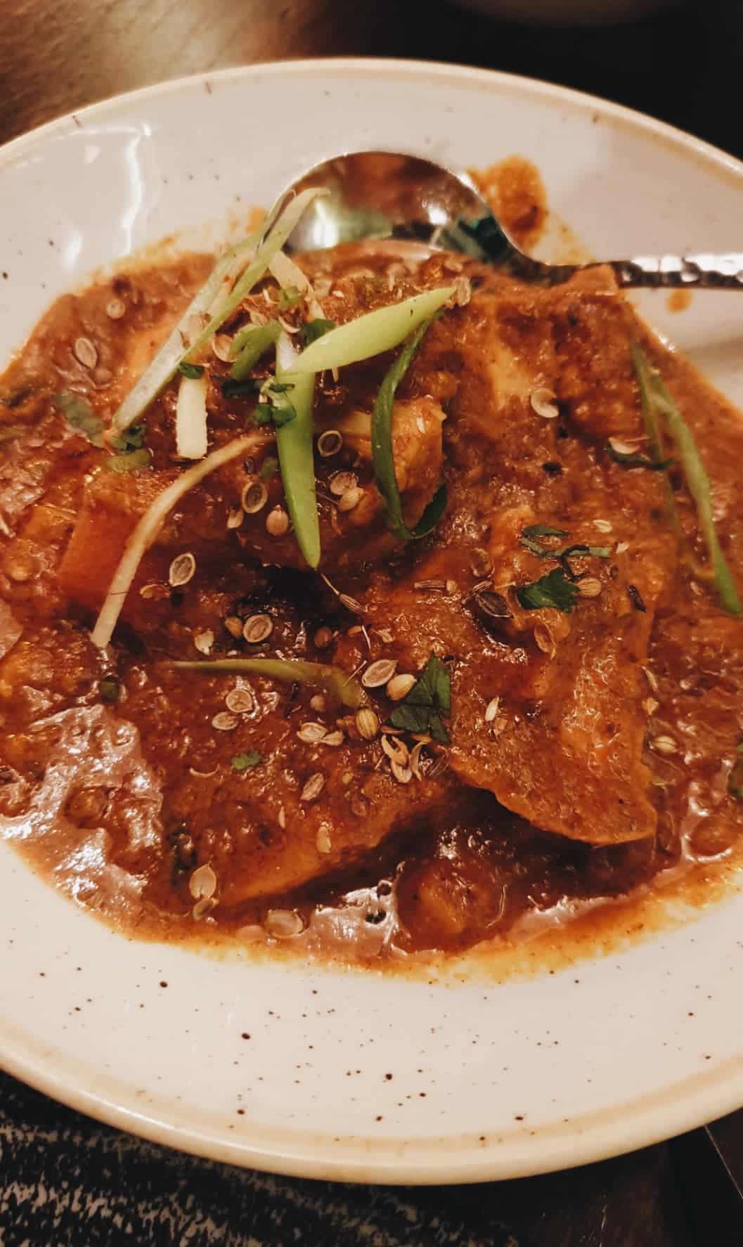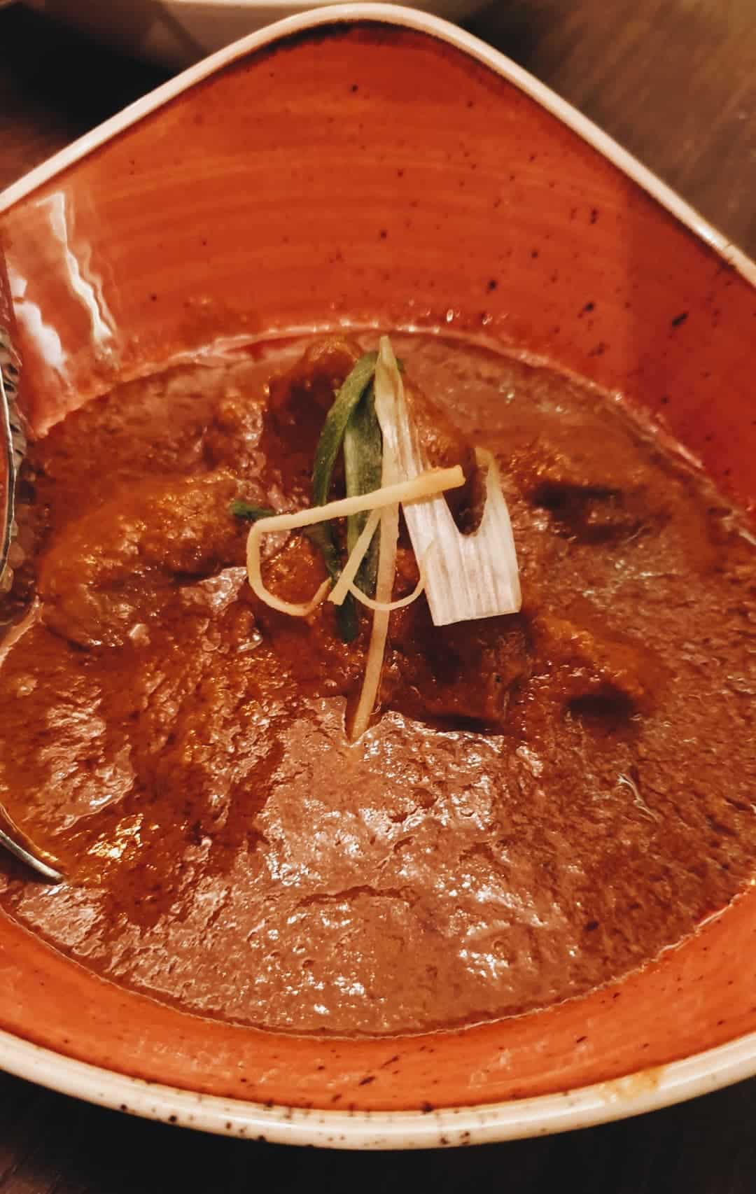 Gosht Ka Roghan Josh: Clásico curry de cordero con salsa de especias, tomate e hierbas, ligeramente picante. Plato muy rico pero un poco más delicado para los sensibles al picante.