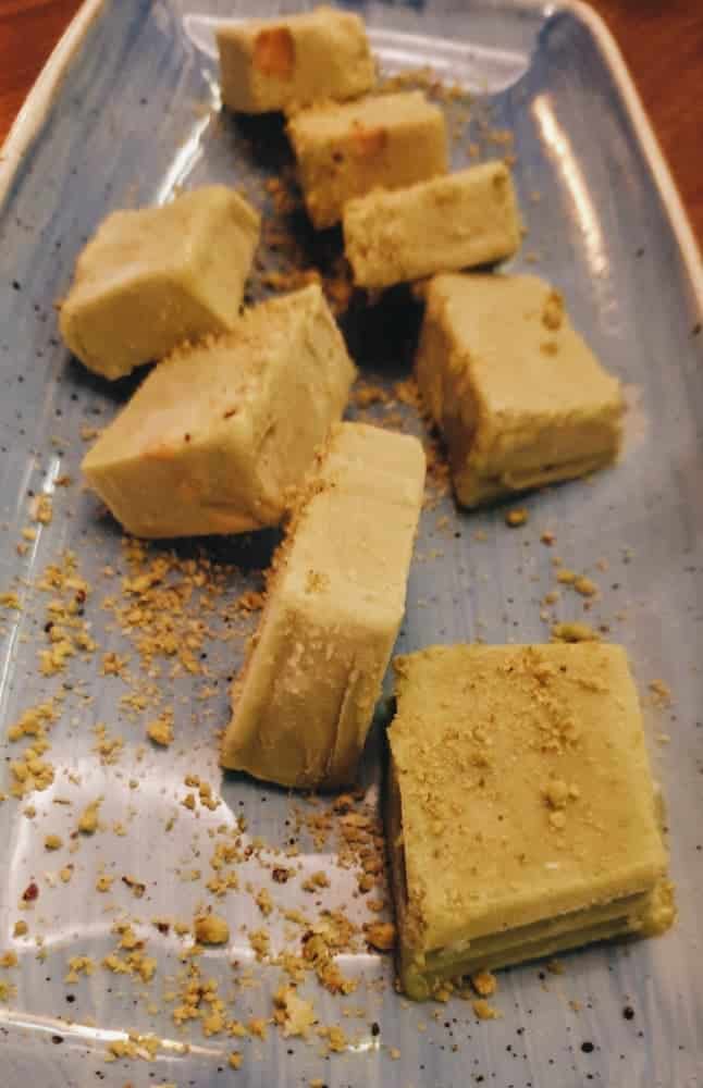 Kufi: helado indio casero sabor pistacho. Muy digestivo y fresco para limpiar el sabor de los currys.t>