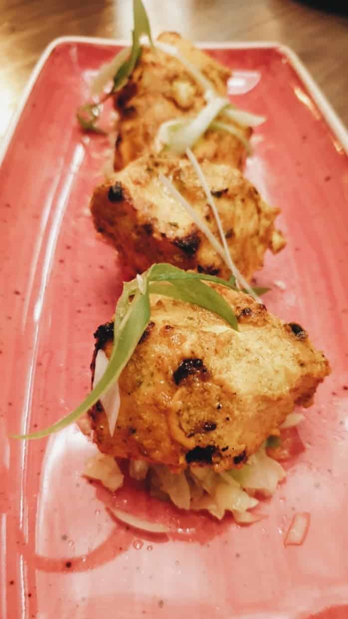 Llegando a la segunda estación, nos encontramos con Murgh Ka Tikka: pechuga de pollo en trozos marinado con yogur, lima, ajo, jengibre y hierbas aromáticas.