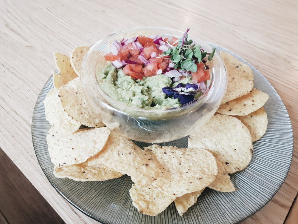 Guacamole con totopos y pico de gallo. Un plato que nunca falla y gusta a todos.