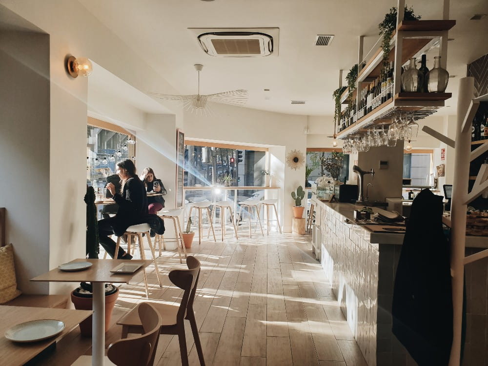 Ya dentro vemos que el público mayoritario es gente joven, es un restaurante muy dinámico y versátil. Ideal si lo que buscas es almorzar, o un plan perfecto si lo que necesitas es un café y un trozo de tarta mientras charlas con amigos o lees tranquilamente tu libro del momento.